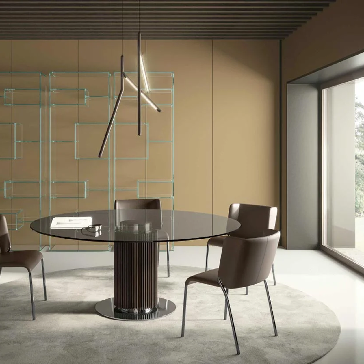 Tonelli propose des créations élégantes et modernes, où le verre devient le matériau central, souvent associé à d’autres éléments comme l’acier et le bois. Ses pièces sont conçues pour apporter une sensation de légèreté et de transparence, tout en offrant une fonctionnalité et une durabilité exceptionnelles dans des intérieurs contemporains.