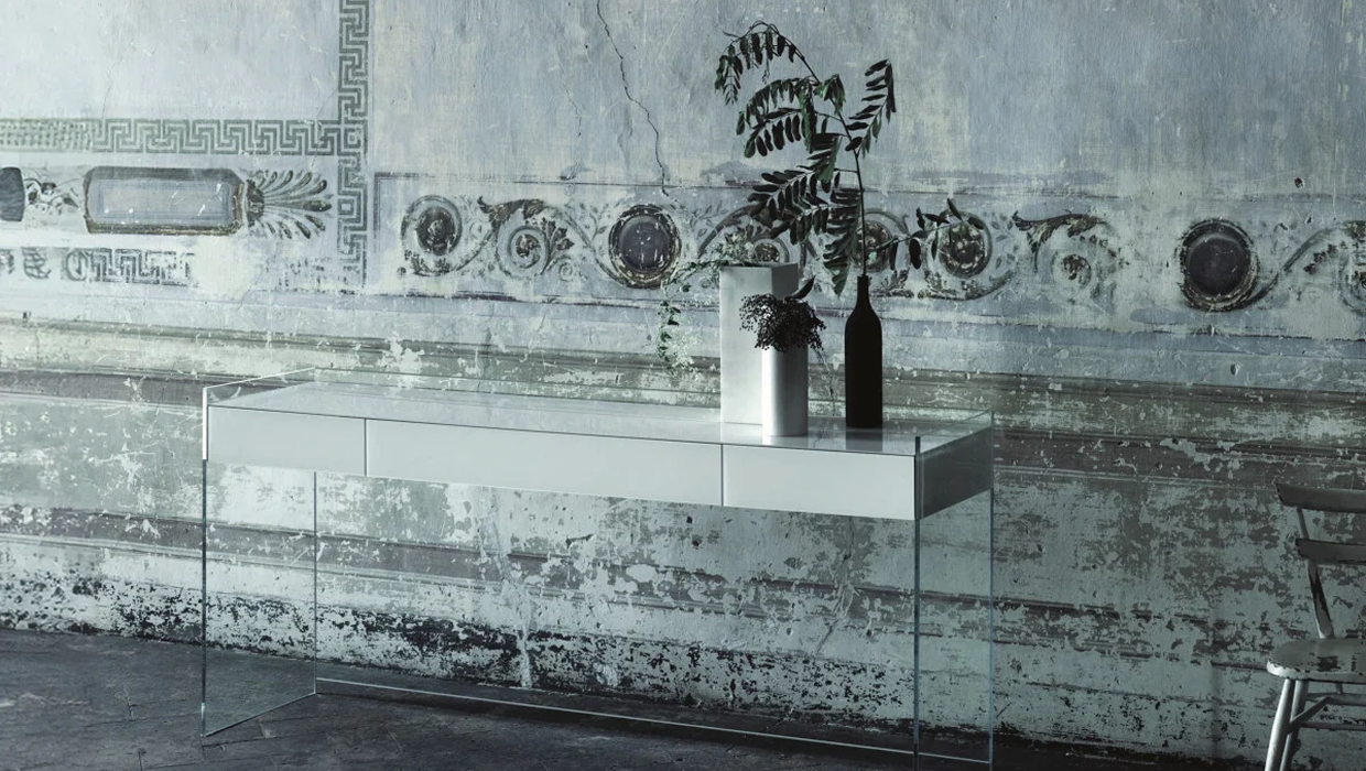 La console Float se distingue par son design minimaliste et élégant, qui met en valeur la beauté du verre. Avec ses lignes épurées et son plateau translucide en verre trempé, elle semble presque flotter, apportant une sensation de légèreté et de transparence à l’espace. Sa structure discrète mais raffinée en fait un meuble polyvalent, adapté à divers styles d’intérieur, du plus moderne au plus classique.