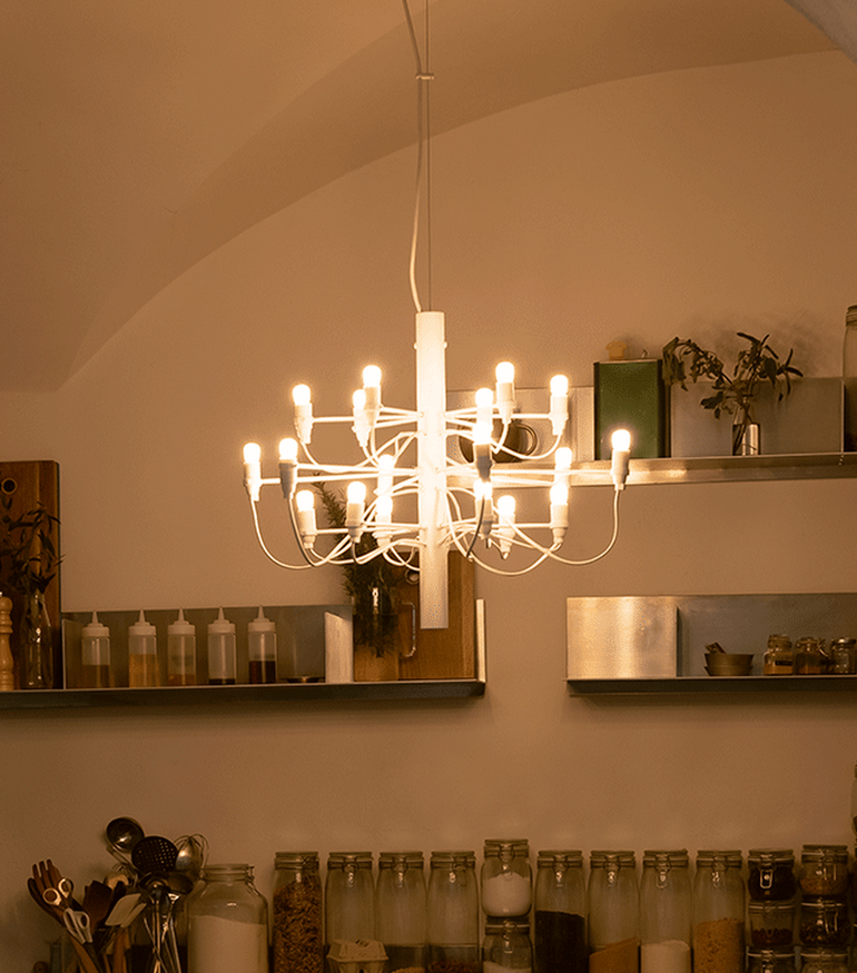 2097/18 est une collection de lampes à suspension, conçue par le célèbre designer italien Gino Sarfatti.